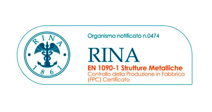 我公司严格遵守安全规范与质量标准进行生产,已获得以下重要认证:金属结构制造领域符合 UNI EN 1090-1 标准,焊接工艺符合 UNI EN ISO 15614 标准,焊工资质符合 UNI EN ISO 9606 标准